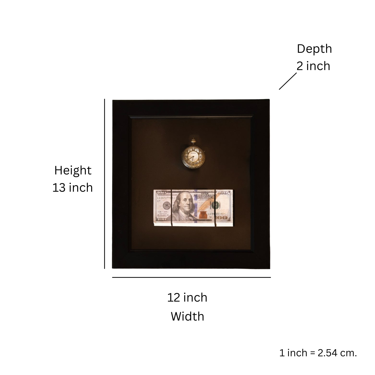 Celebrate the ultimate symbols of success with this elegant Time & Money Framed Art Piece. Featuring a vintage-style pocket watch and a crisp stack of $100 bills, this display is a bold reminder that time and money are the true currencies of life.